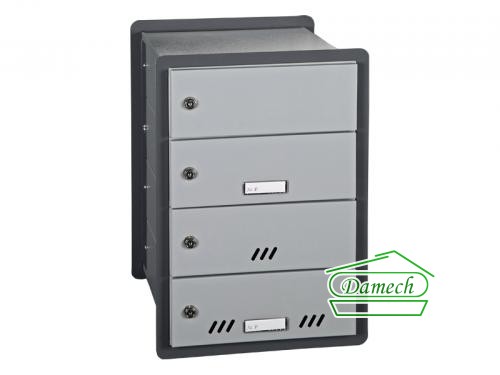 - E4/3aw – skrzynka dla trzech lokatorów wyposażona w ażurowy wziernik oraz wizytownik